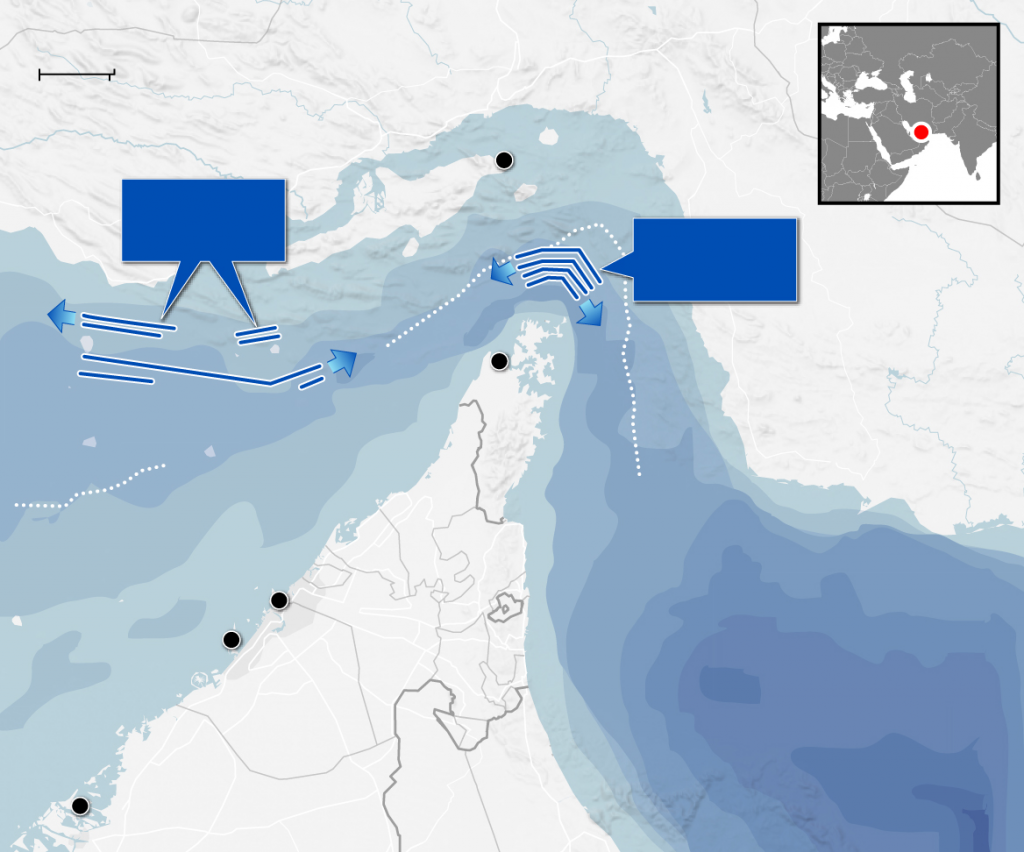Η Τεχεράνη φαίνεται να συνδέει την ασφαλή ναυσιπλοΐα με την καταβολή των σχετικών τελών, με ιρανικά σκάφη να παρέχουν συνοδεία στα πλοία που εγκρίνονται για διέλευση.