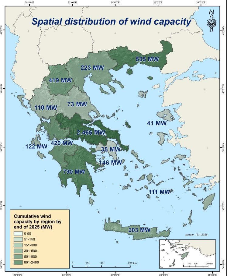 ΕΛΕΤΑΕΝ: Στα 5,7 GW η συνολική αιολική ισχύς στην Ελλάδα το 2025 – Η πρωτιά της Στ. Ελλάδας και της ΤΕΡΝΑ Ενεργειακή