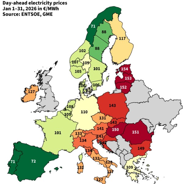 Ειδικότερα, επισημαίνει ότι τον Ιανουάριο η Ελλάδα κατάφερε να «αποσυνδεθεί» από τις υψηλές τιμές της Κεντρικής και Ανατολικής Ευρώπης. Η διαφορά των 30-40 ευρώ/MWh δεν είναι απλώς μια στατιστική λεπτομέρεια, αλλά μια τεράστια απόκλιση για τα δεδομένα της χονδρεμπορικής αγοράς.