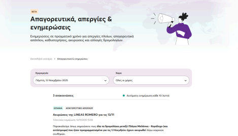 • Πληροφορίες για καθυστερήσεις, αλλαγές και ακυρώσεις σε πραγματικό χρόνο
