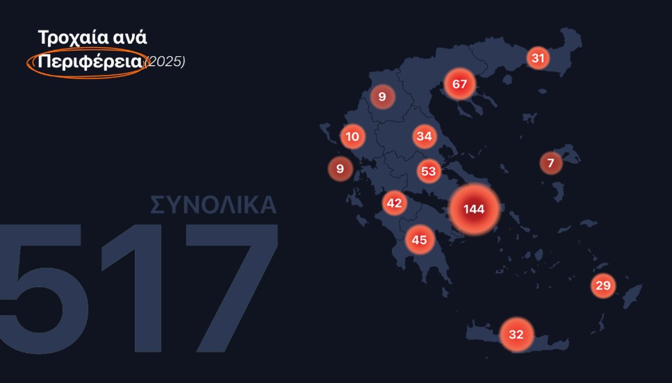 Οι περιοχές με τα υψηλότερα ποσοστά θανατηφόρων τροχαίων