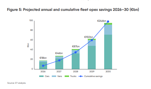Η εξηλεκτρισμένη κινητικότητα των εταιρικών στόλων θα μπορούσε να αποφέρει εξοικονόμηση λειτουργικού κόστους έως και 246 δισ. ευρώ έως το 2030, σύμφωνα με νέα μελέτη των Eurelectric και EY, αναδεικνύοντας τον καθοριστικό ρόλο που μπορούν να διαδραματίσουν οι επιχειρηματικοί στόλοι στη μετάβαση προς καθαρότερες μεταφορές.