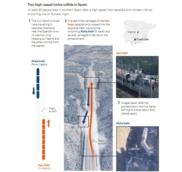 Τραγωδία στην Ισπανία: 39 νεκροί και δεκάδες τραυματίες από τον εκτροχιασμό τρένων υψηλής ταχύτητας – Βίντεο