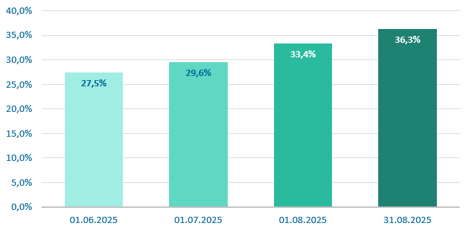 Σύμφωνα με τα τελευταία στοιχεία της Ένωσης Ασφαλιστικών Εταιρειών Ελλάδος (ΕΑΕΕ), το ποσοστό των ασφαλισμένων οχημάτων με κάλυψη φυσικών φαινομένων έφτασε το 36,3% στο τέλος Αυγούστου, έναντι 27,5% στις αρχές Ιουνίου.