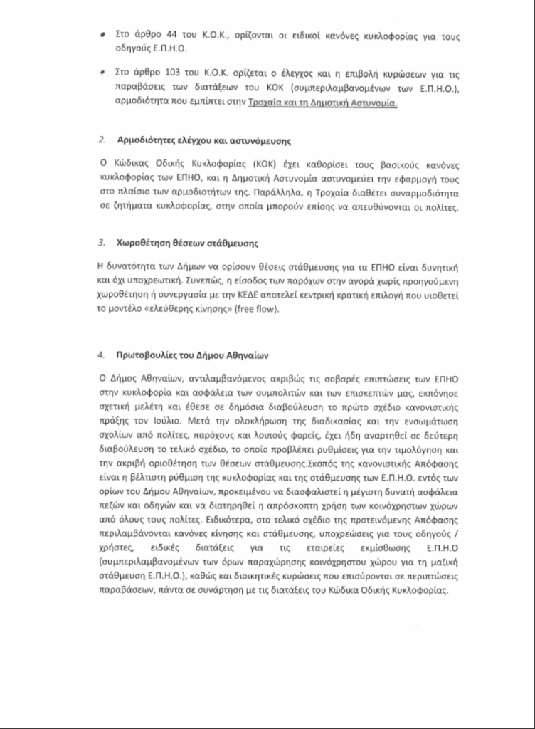 «Θεωρούμε σκόπιμο οι σχετικές επισημάνσεις και παρεμβάσεις να απευθύνονται πρωτίστως προς τα αρμόδια Υπουργεία», απάντησε ο Δήμαρχος, υποστηρίζοντας ότι η δυνατότητα των Δήμων να ορίσουν θέσεις στάθμευσης είναι δυνητική και όχι υποχρεωτική.