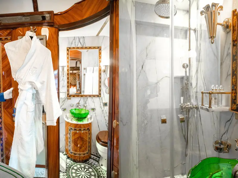 Οι επιβάτες θα επιβιβάζονται στα ανακαινισμένα art déco βαγόνια στο Παρίσι, όπου θα τους υποδέχεται ένα ποτήρι σαμπάνιας πριν εγκατασταθούν στις κομψές καμπίνες — από ιστορικά δίκλινα έως grand suites με ιδιωτικά μαρμάρινα μπάνια.