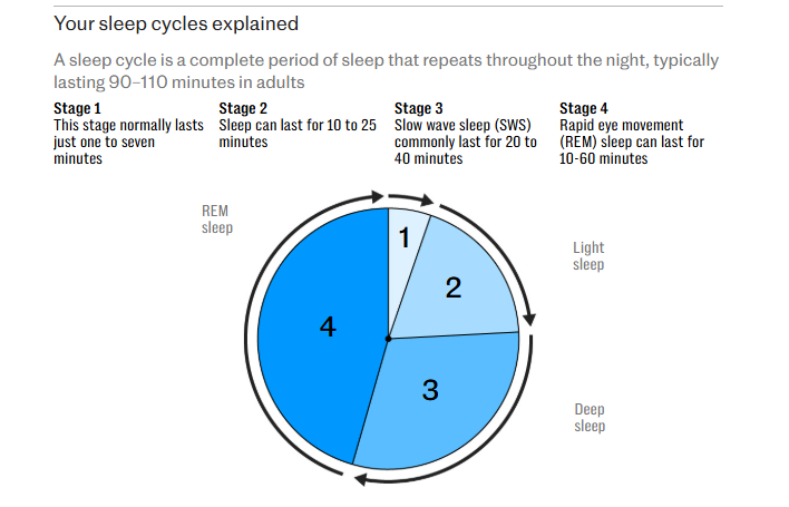 Κατά τη διάρκεια της νύχτας περνάμε από 4 έως 6 κύκλους ύπνου, που περιλαμβάνουν:
