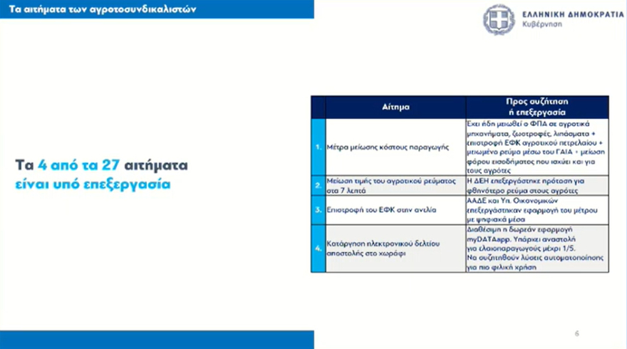 Ανοίγει διάλογος για επόμενες τροποποιήσεις σε δεύτερο στάδιο σε συνεργασία με τους φορείς των αγροτών.