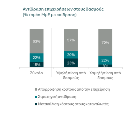 • 2/3 απορρόφησαν το κόστος μειώνοντας τα περιθώρια κέρδους, λειτουργώντας ως «ανάχωμα» για την οικονομία
