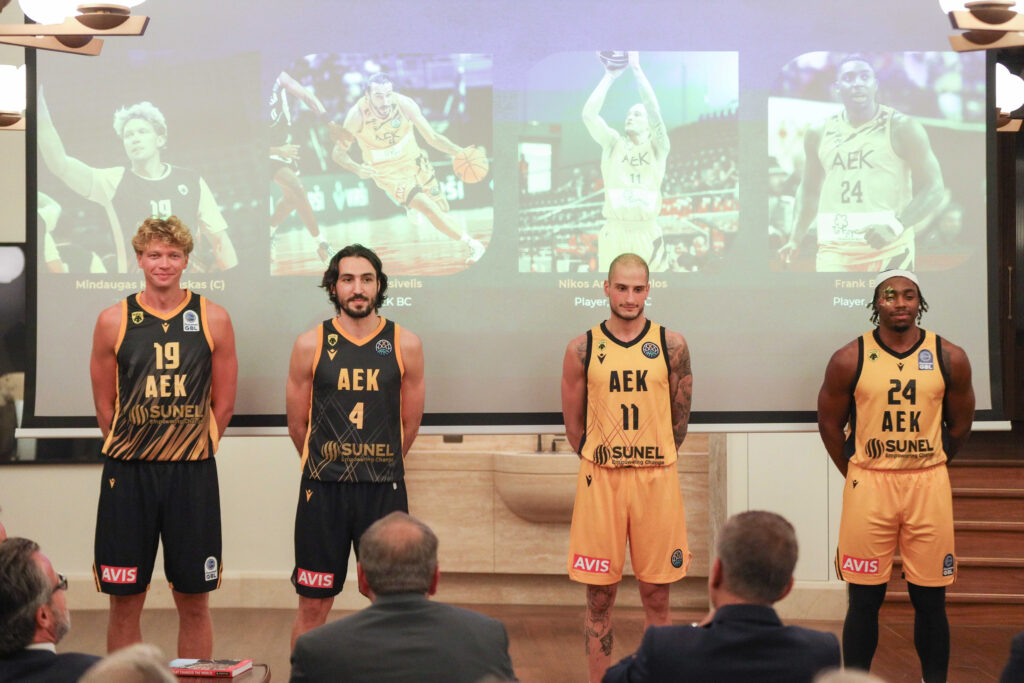 Η βραδιά συνεχίστηκε με την επίσημη παρουσίαση της νέας φανέλας της ΑΕΚ BC για τη σεζόν 2025–2026, σηματοδοτώντας την περαιτέρω ενδυνάμωση της συνεργασίας μεταξύ της ομάδας και της SUNEL. Μετά τη μετονομασία του Κλειστού Ολυμπιακού Γυμναστηρίου Άνω Λιοσίων σε “SUNEL Arena”, η SUNEL αναλαμβάνει φέτος ρόλο Platinum Sponsor της ΑΕΚ BC, με το λογότυπο της εταιρείας να δεσπόζει στο μπροστινό μέρος της φανέλας, ενώ στο πίσω μέρος αναγράφεται η “The Green Alliance”. Οι νέες εμφανίσεις παρουσιάστηκαν από τους Κουζμίνσκας, Κατσίβελη, Αρσενόπουλο και Μπάρτλεϊ, ενώ στη συνέχεια ο διοικητικός ηγέτης της ΑΕΚ BC, κ. Μάκης Αγγελόπουλος, απηύθυνε σύντομο χαιρετισμό, τονίζοντας τη στρατηγική σημασία της συνεργασίας με τη SUNEL και την κοινή δέσμευση των δύο πλευρών για ένα πιο βιώσιμο μέλλον στον αθλητισμό.