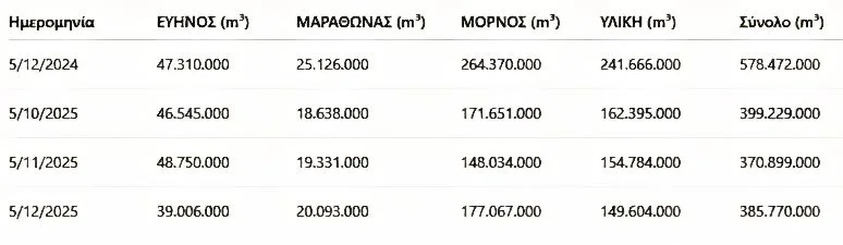 Ωστόσο, σύμφωνα με τα τελευταία διαθέσιμα στοιχεία της ΕΥΔΑΠ, ακόμα υστερούμε κατά 200 εκατ. κυβικά μέτρα, σε σχέση με πέρυσι την ίδια περίοδο.