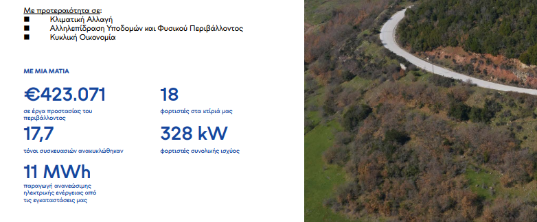 Παράλληλα, η εταιρεία εφαρμόζει σύστημα περιβαλλοντικής διαχείρισης ευθυγραμμισμένο με GRI και GHG, διατηρεί ενεργό πιστοποιητικό ISO 14001 και δηλώνει μηδενικά περιβαλλοντικά πρόστιμα, με στόχο τη διατήρηση αυτής της επίδοσης και το 2025.