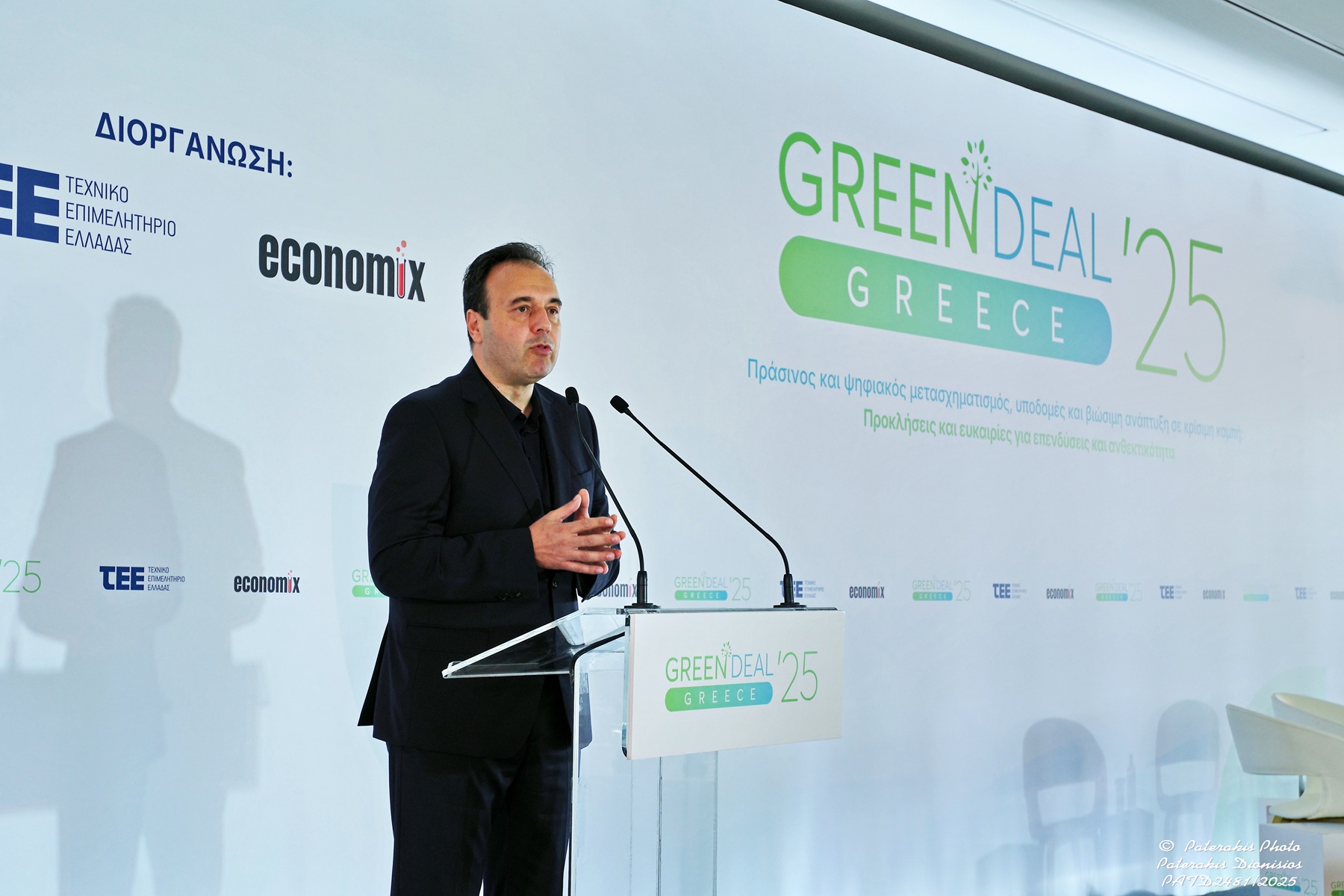 Τους βασικούς άξονες μέσα από τους οποίους η τεχνολογία μεταμορφώνει τον δημόσιο τομέα παρουσίασε ο υπουργός Ψηφιακής Διακυβέρνησης, Δημήτρης Παπαστεργίου, στο συνέδριο Green Deal Greece 2025, που διοργάνωσε το Τεχνικό Επιμελητήριο Ελλάδας σε συνεργασία με το economix.gr, στο Κέντρο Πολιτισμού Ίδρυμα Σταύρος Νιάρχος.