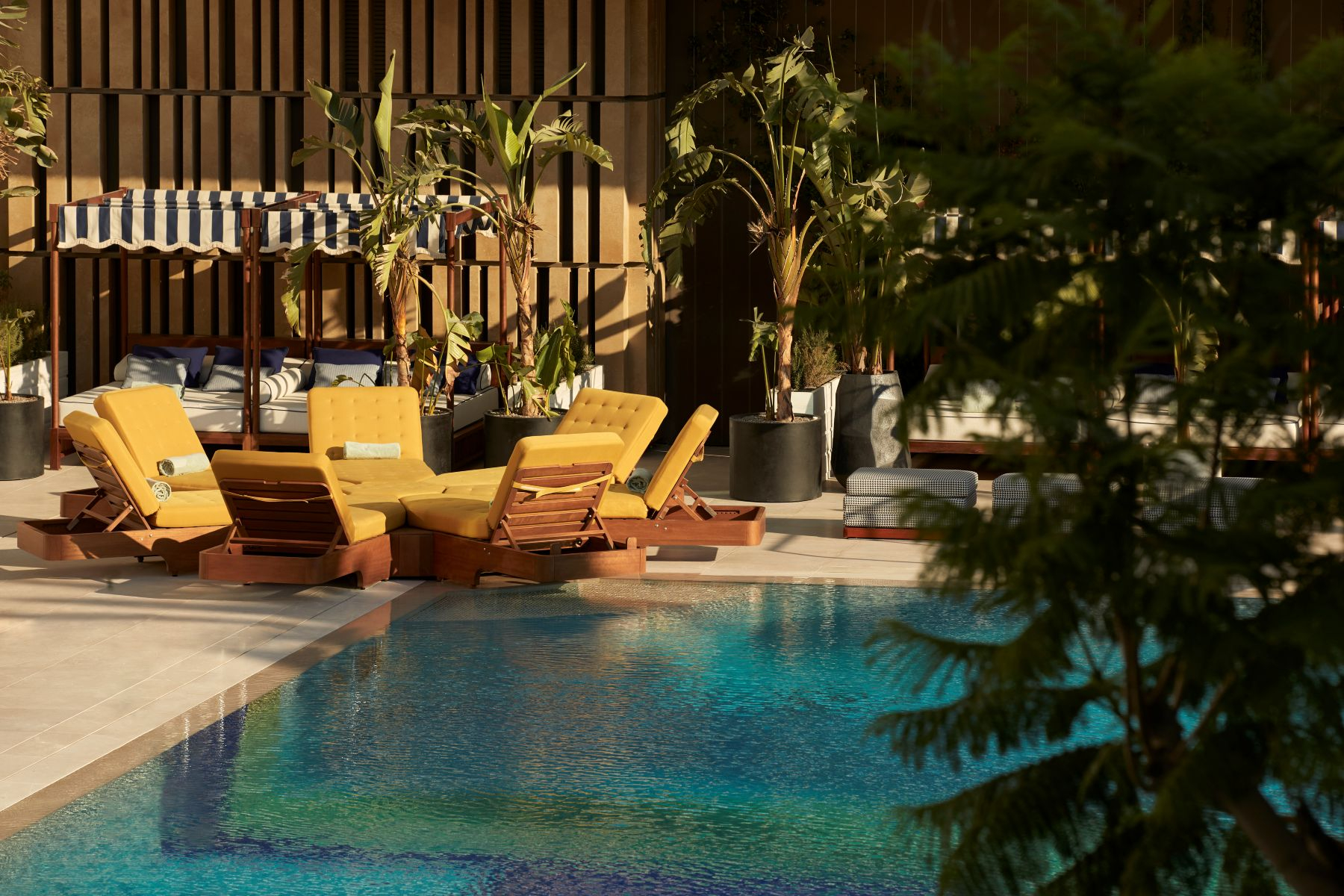 Την αρχιτεκτονική μελέτη του έργου ανέλαβε το γραφείο AETER Architects. Στο εσωτερικό, οι χώροι που έχουν σχεδιαστεί από την AvroKO αναβιώνουν την αισιοδοξία της χρυσής εποχής του αθηναϊκού μοντερνισμού, συνδυάζοντας διατηρημένα mid-century στοιχεία με νέα έργα τέχνης και ειδικά σχεδιασμένα κομμάτια από το ιστορικό αθηναϊκό επιπλοποιείο Σαρίδη και την κεραμίστρια Ελένη Βερναδάκη. Την επιμέλεια του εικαστικού προγράμματος —και τη διαμόρφωση του lobby σε συνεργασία με την AvroKO— υπογράφει η Mare Studio, ως art consultant και curator του ξενοδοχείου.