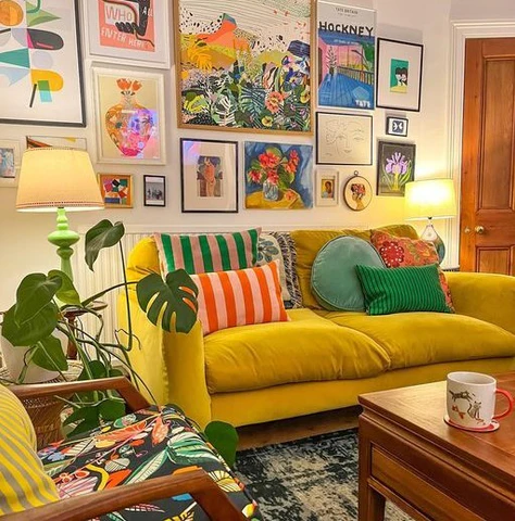 Αν αναρωτιέστε αν ο μαξιμαλισμός ταιριάζει στα μικρά διαμερίσματα, η απάντηση είναι ξεκάθαρη: ναι — αρκεί να υπάρχει μέτρο. Αντί για μεγάλα ογκώδη έπιπλα, επενδύστε σε έντονες πινελιές που τραβούν το βλέμμα, όπως ένας ζωηρός πίνακας, ένα statement φωτιστικό ή ένα χαλί με σχέδιο. Έτσι ο χώρος αποκτά ζωντάνια, χωρίς να ασφυκτιά.