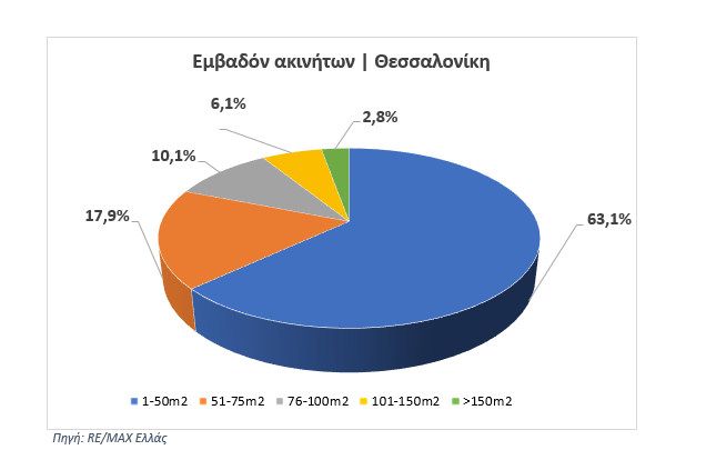 Στη Θεσσαλονίκη, το 63,1% των μισθώσεων αφορά κατοικίες έως 50 τ.μ., και άλλο 17,9% ακίνητα 51–75 τ.μ. Στις περιοχές όπως η Καλαμαριά και η Θέρμη ξεχωρίζουν οι μισθώσεις μεγαλύτερων κατοικιών (75–150 τ.μ.), ενώ στο κέντρο και τη δυτική πλευρά κυριαρχούν τα μικρότερα διαμερίσματα.