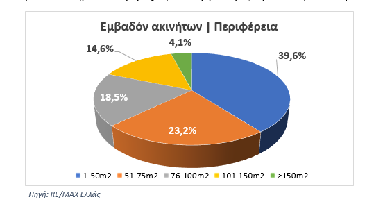 Σύμφωνα με την RE/MAX Ελλάς, το 44,7% των ενοικιάσεων αφορά κατοικίες έως 50 τ.μ., το 21,9% από 51–75 τ.μ., και το 30,1% από 76–150 τ.μ. Μόλις το 3,3% αφορά κατοικίες άνω των 151 τ.μ..