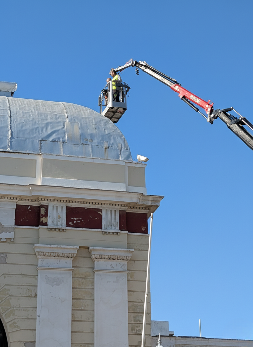 • Αποκατάσταση των μεταλλικών φύλλων επικάλυψης στην τετρακλινή απόληξη της θολωτής στέγης.